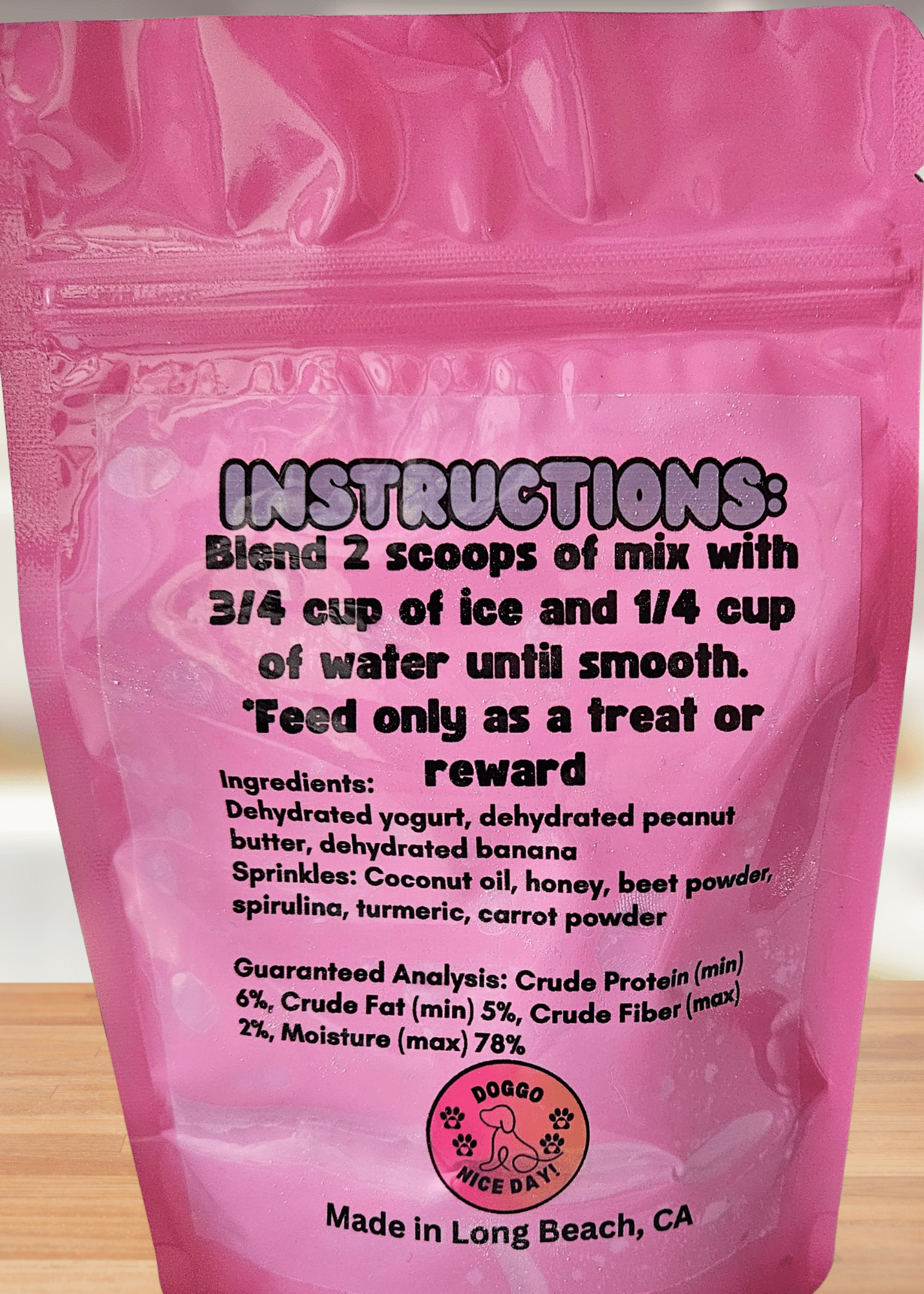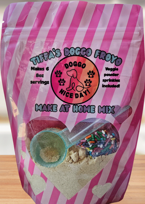 Now your pup can enjoy a cool, creamy treat anytime—straight from your kitchen! 🐾 With Tiffa’s Doggo FroYo Mix, you’re in control: make as much or as little as you like. Just blend with ice and water for a refreshing snack your dog will drool over.